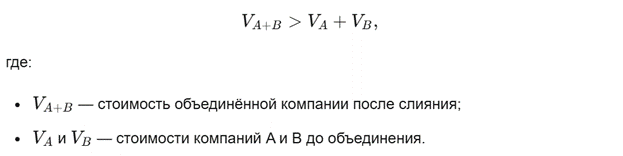 Финансовая – проявляется в улучшении финансовых показателей благодаря объединению капиталов или компетенций: